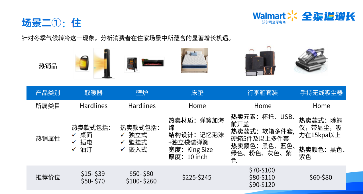 以上内容出自沃尔玛官方推荐,各位卖家可以对照作为自己在秋冬旺季的一个选品参考,为即将到来的年底秋冬旺季打造爆款做准备。
