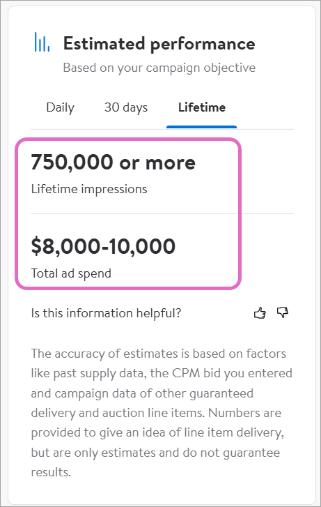 输入最高竞价后,系统将根据定向策略、运行时间、预算等信息预测展示量及广告支出估计范围。